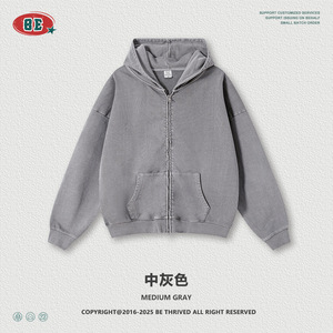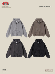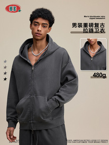 BEメンズウェア | 2025年秋 アメリカンスタイル ヴィンテージ風 重厚480G ウォッシュ加工 ワックス染め カーディガン スウェットジャケット メンズ