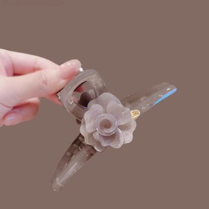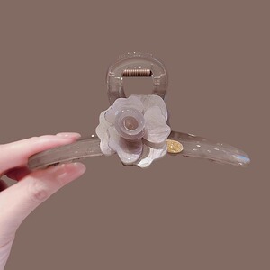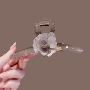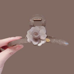 灰色山茶花大号盘发抓夹发卡女2025新款后脑勺鲨鱼夹发夹头饰发饰