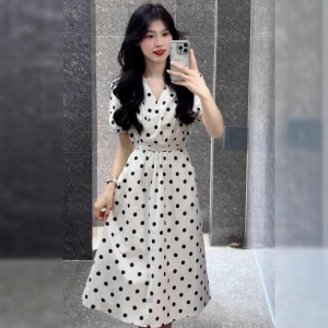法式波点巨好看连衣裙子女收腰显瘦独特漂亮绝美夏季2025新款长裙