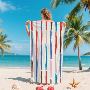 时尚彩色条纹系列超细纤维沙滩巾 TEMU跨境爆款浴巾定 制印花毛巾