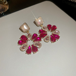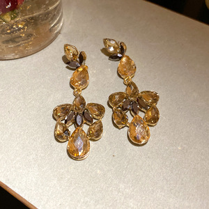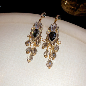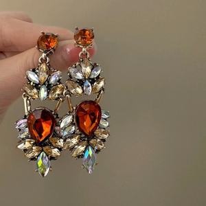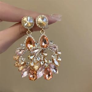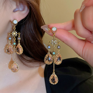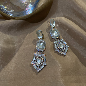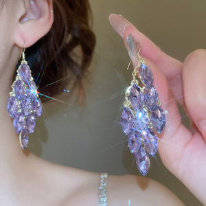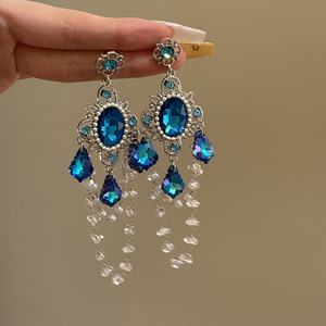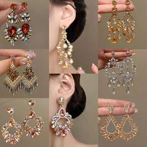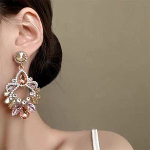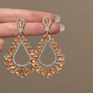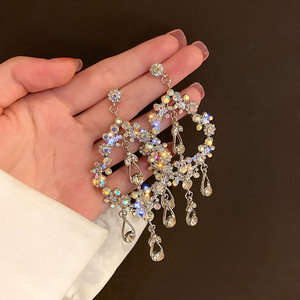 シルバー針ヨーロッパとアメリカのクロスボーダーダイヤモンド中空ウォータードロップタッセルイヤリングライト高級ハイエンドイヤリングファッショナブルな誇張イヤリング女性用