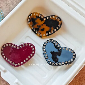 韩版爱心镶钻醋酸边夹简约鸭嘴夹高级感发卡优雅气质一字夹女发夹