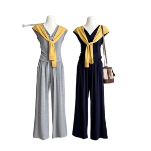 夏の新作!新しい韓国スタイルのファッショナブルな年齢を減らすショールトップデザインニッチスリムパンツスーツ女性用