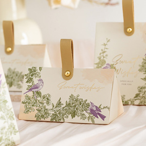 跨境热销 喜糖盒婚礼森系喜糖盒子伴手礼手提喜糖袋包装盒空盒