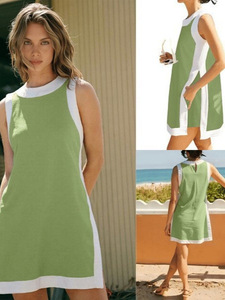 Amazon独立系夏の新作売れ筋レディースカジュアルカラーブロックラウンドネックノースリーブトップとショートパンツセット