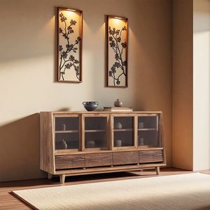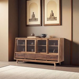 侘寂风老榆木餐边柜茶室复古玻璃门防尘柜茶具紫砂壶储物柜收纳柜