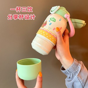 316不锈钢高颜值卡通儿童保温杯一杯三饮水杯可爱学生便携拎拎壶