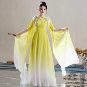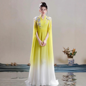 中国风大合唱演出服女长裙气质诗歌朗诵服装飘逸成人古筝演出服装