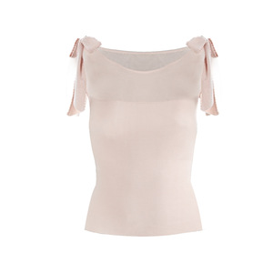夏のテンセルアイスフィールトップ、ラウンドネック、蝶ネクタイ、甘いシャツ、ノースリーブ、ウエストタイトTシャツ