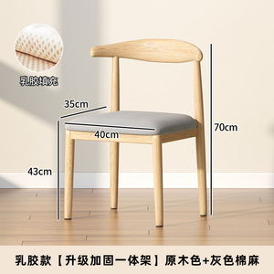 乳胶款【出口升级加固】原木色+灰色棉麻/牛角椅✦⚑