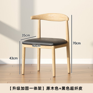 乳胶款【出口升级加固】原木色+米色超纤皮/牛角椅✦⚑