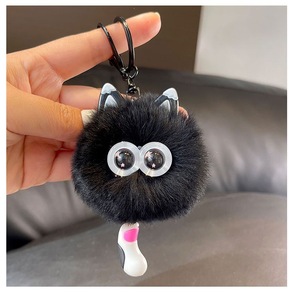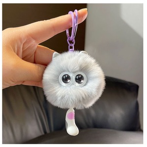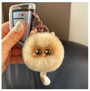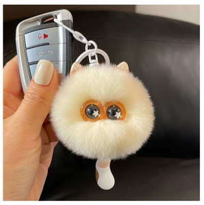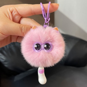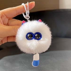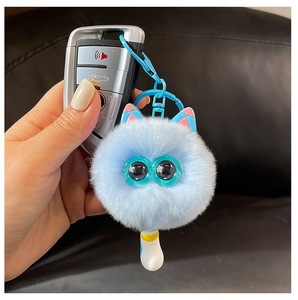 仿兔毛可爱小猫咪毛球汽车钥匙扣挂件ins网红毛绒书包包挂饰礼物
