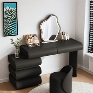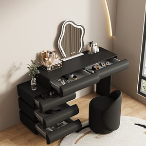 2025新款小户型黑色卧室梳妆台斗柜一体化妆台轻奢高级奶油风桌子