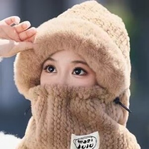 新款防寒围脖一体面罩毛绒帽子女冬季护耳加厚骑车防风护耳帽批发