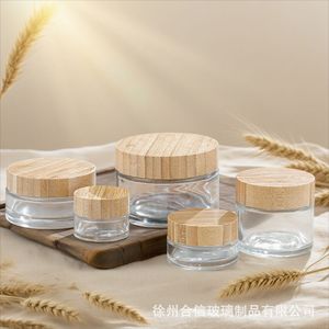 30g竹木盖透明膏霜瓶100g玻璃面膜罐子50g化妆护肤品分装小样瓶子