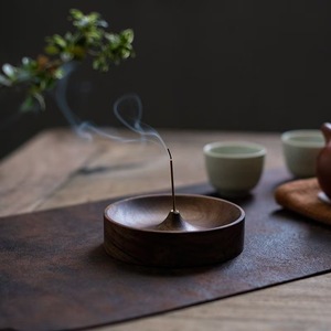 北美黑胡桃木实木线香家用香插手工茶道圆形香炉香底座沉香盘托