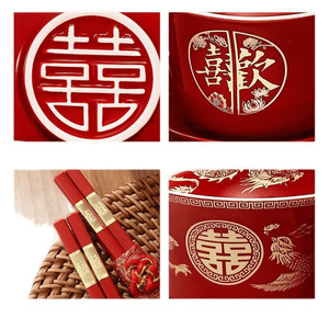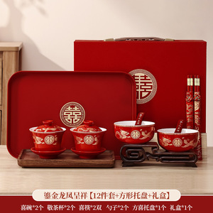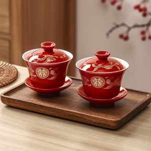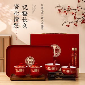 敬茶カップ、結婚式の食器セット、結婚式のボウル、乾杯、ティーセット、ボウルペア、赤い結婚式の贈り物用品