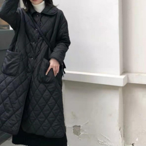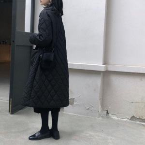 菱格棉服女中长款冬季百搭韩版休闲宽松显瘦气质过膝薄款棉衣外套
