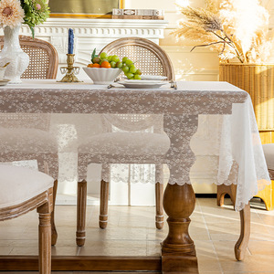 フレンチパストラルスタイルの白いレースのテーブルクロス、レストランの高級テーブルクロス、家庭用コーヒーテーブル、ダイニングキャビネットクロス、滑り止めと耐摩耗性。
