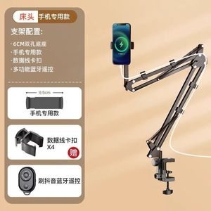 テレビ視聴用の横たわる金属製ベッドサイド携帯電話ホルダー、iPadタブレットホルダークリップに適したユニバーサルカンチレバー