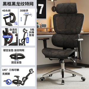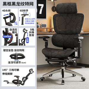 坐深调节+搁脚:黑框龙纹特网(6D软面扶手+3级气杆)