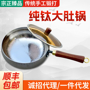 張丘チタン槌目大腹鍋純チタン手鍛造チタン合金錆びない中華鍋コーティングされていないノンスティック中華鍋