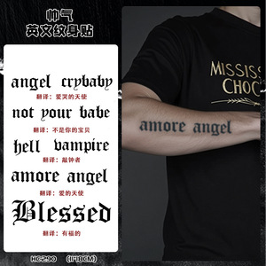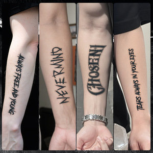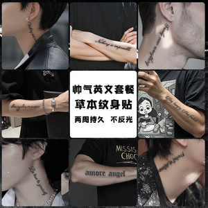 英文字母 帅气手臂纹身贴草本大腿半永久手臂仿真果汁刺青不反光