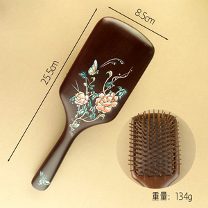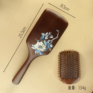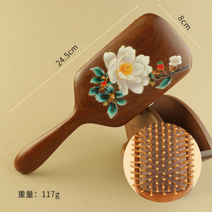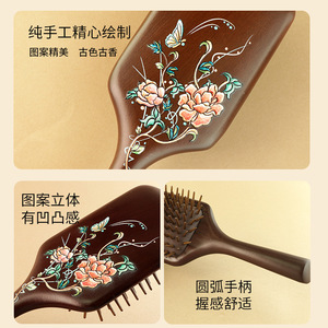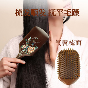 金丝檀木梳彩绘大号方型气垫梳护发梳疏通头部经络气囊梳女高级感