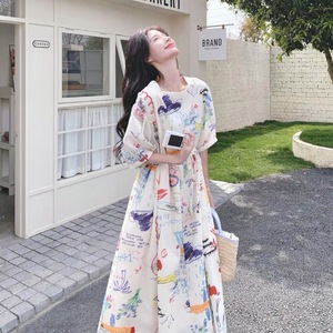 超好看夏日俏皮减龄涂鸦风连衣裙女2025新款松弛感韩系小众A字裙