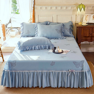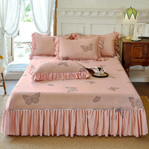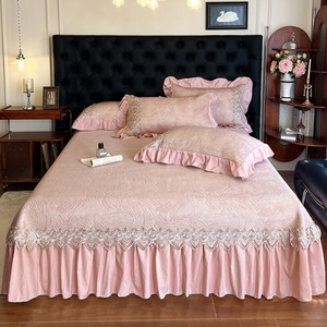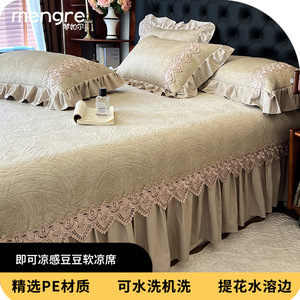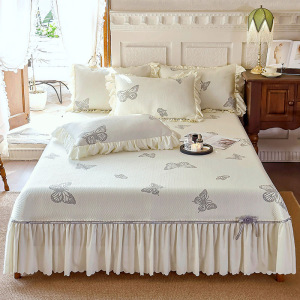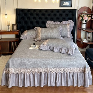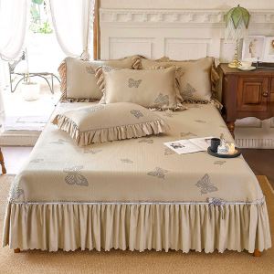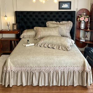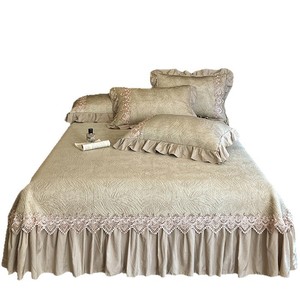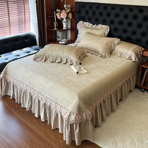 フランスの高級アイスビーンズマットベッドカバー3点セットレースアイスシルクマットベッドカバーベッドスカートサマーキルト4点セット