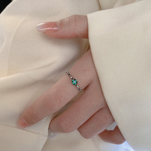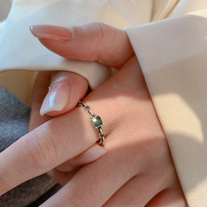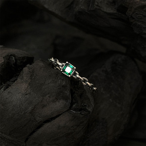 s925纯银祖母绿锆石链条开口戒指女小众设计时尚个性轻奢高级