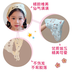 儿童田园风碎花头巾法式复古蕾丝花边三角巾女童度假拍照发带头饰