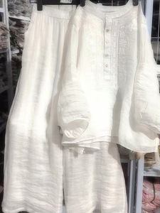 ヨーロッパステーション 2025 春夏新作新中国風ボタンスタンドカラーシャツ弾性ウエスト無地ツーピーススーツ