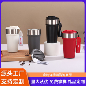 高颜值304不锈钢咖啡杯带提绳便携保温杯户外车载随行直饮杯批发