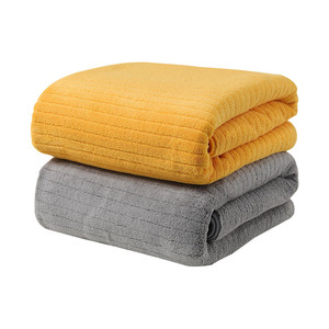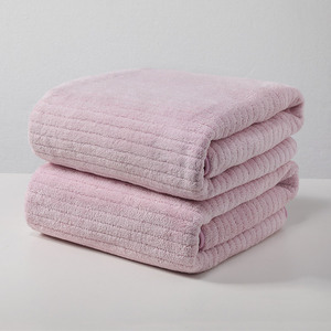 珊瑚绒毛巾成人真空压缩吸水干发巾不掉毛洗澡裹巾沙滩巾条纹浴巾