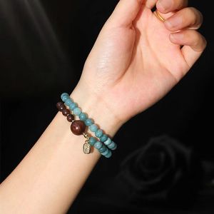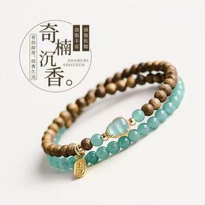 新中式蓝玉髓金丝檀木串珠文玩手串男叠戴民族风绿檀国风手链批发