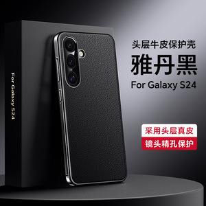 奢华电镀素皮适用三星s24手机壳s24ultra保护壳s24+防摔皮套新款