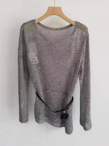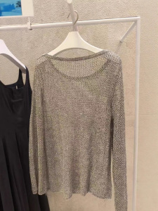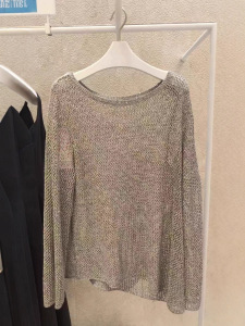 伊*L女装2025年早秋新款云烟灰时尚百搭镂空针织衫女1G7632641