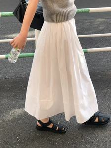 现h韩国东大门同款25年早秋新款OUNCE棉100%纯色气质松紧腰半裙长