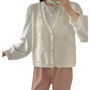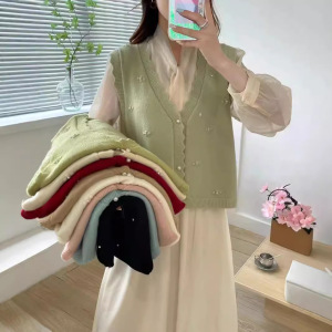 现货秋季新款毛衣背心女钉珠学院风外搭叠穿薄款无袖针织开衫马甲