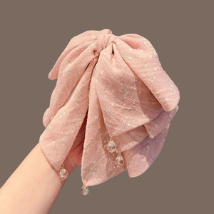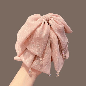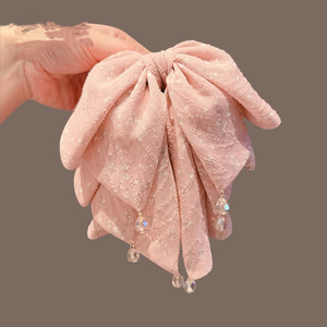 田园淑女风碎花蝴蝶结高马尾抓夹垂感钉珠2025新款后脑勺发夹顶夹