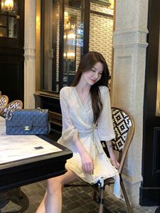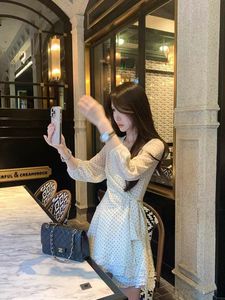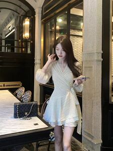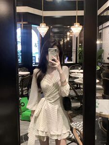 JustQin 7/13 水玉スイートアイランド 2025 新しい秋水玉ショートスカートドレス女性用
