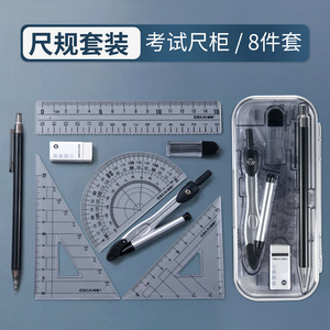 圆规尺子套装初中生专用小学生尺规透明直尺三角板量角器8件套
