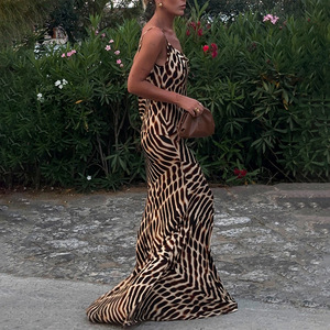 ヨーロッパとアメリカンスタイルの2025秋クロスボーダー新しいカジュアルホリデースタイルクリエイティブデジタルプリントハイウエストサスペンダードレス女性用