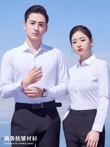 高档职业装斜纹衬衫女长袖男士衬衣短袖白领工作服商务正装蓝衬衫