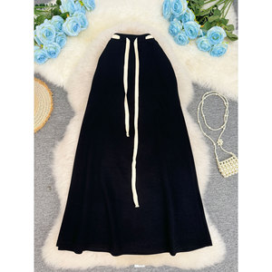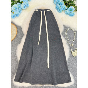 初秋の新しい巾着カジュアルスカート、ファッショナブルで多用途なハイウエストスリムミドル丈スカート、女性用