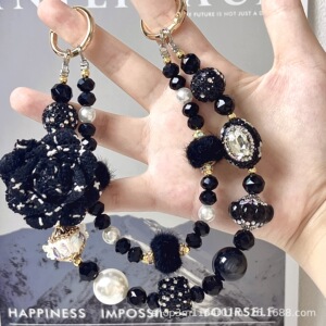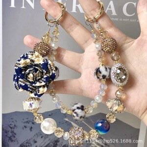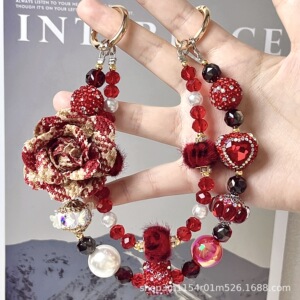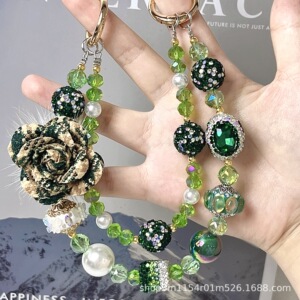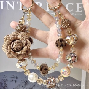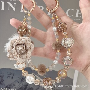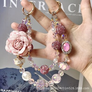 高级感闪钻山茶花手机链手提挂绳腕带链条富婆链气质时尚新款挂饰