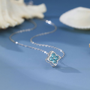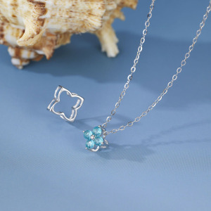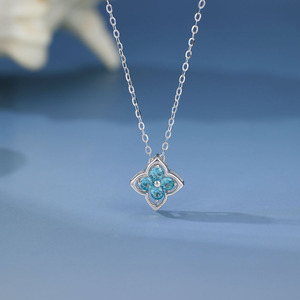 S925纯银一饰两戴锆石四叶草项链镶钻镂空吊坠国潮锁骨链饰品厂家