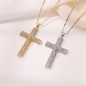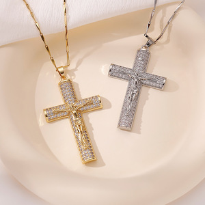 跨境新款欧美镶钻人像十字架满钻吊坠时尚个性配饰饰品首饰批发