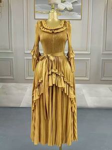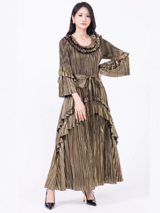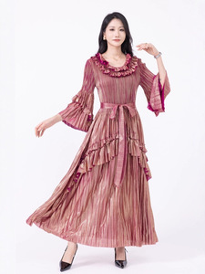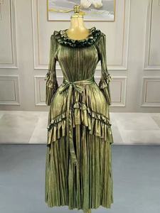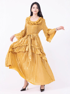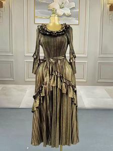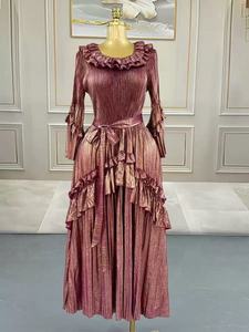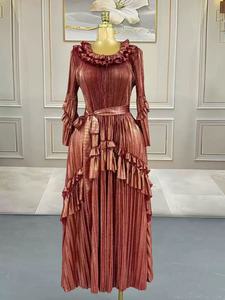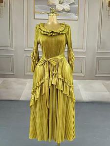 2025 春夏の新ファッションプリーツ気質ドレス痩身プラスサイズパーソナライズプリーツスカートドレス女性のための